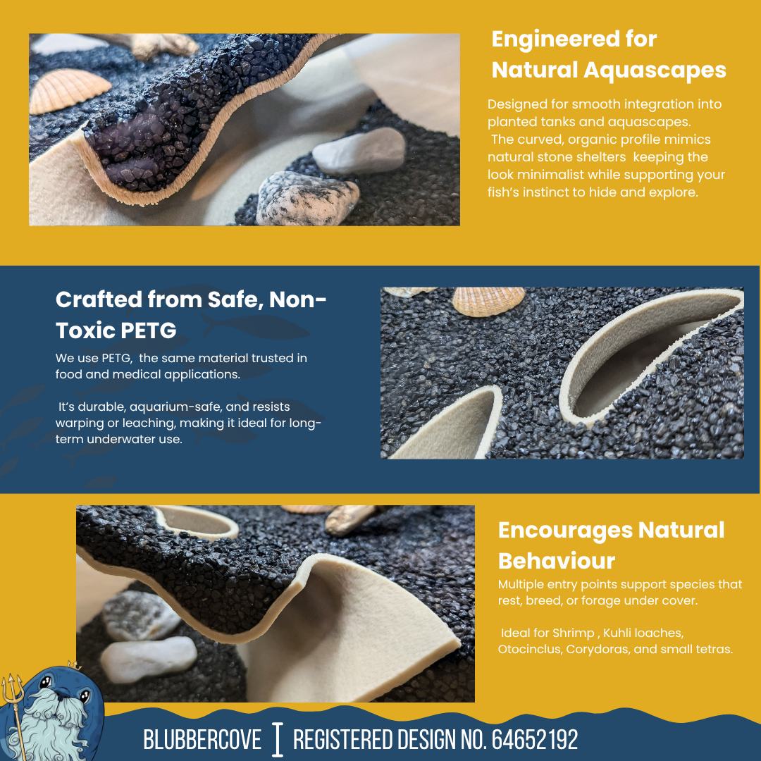 Create depth, drama, and a safe space for your fish or reptiles with this corner-fitting tunnel cave. Designed to hug the glass of your aquarium or terrarium, it forms a natural-looking underground hideout perfect for shrimp, bettas, axolotls, small lizards, geckos, and more.