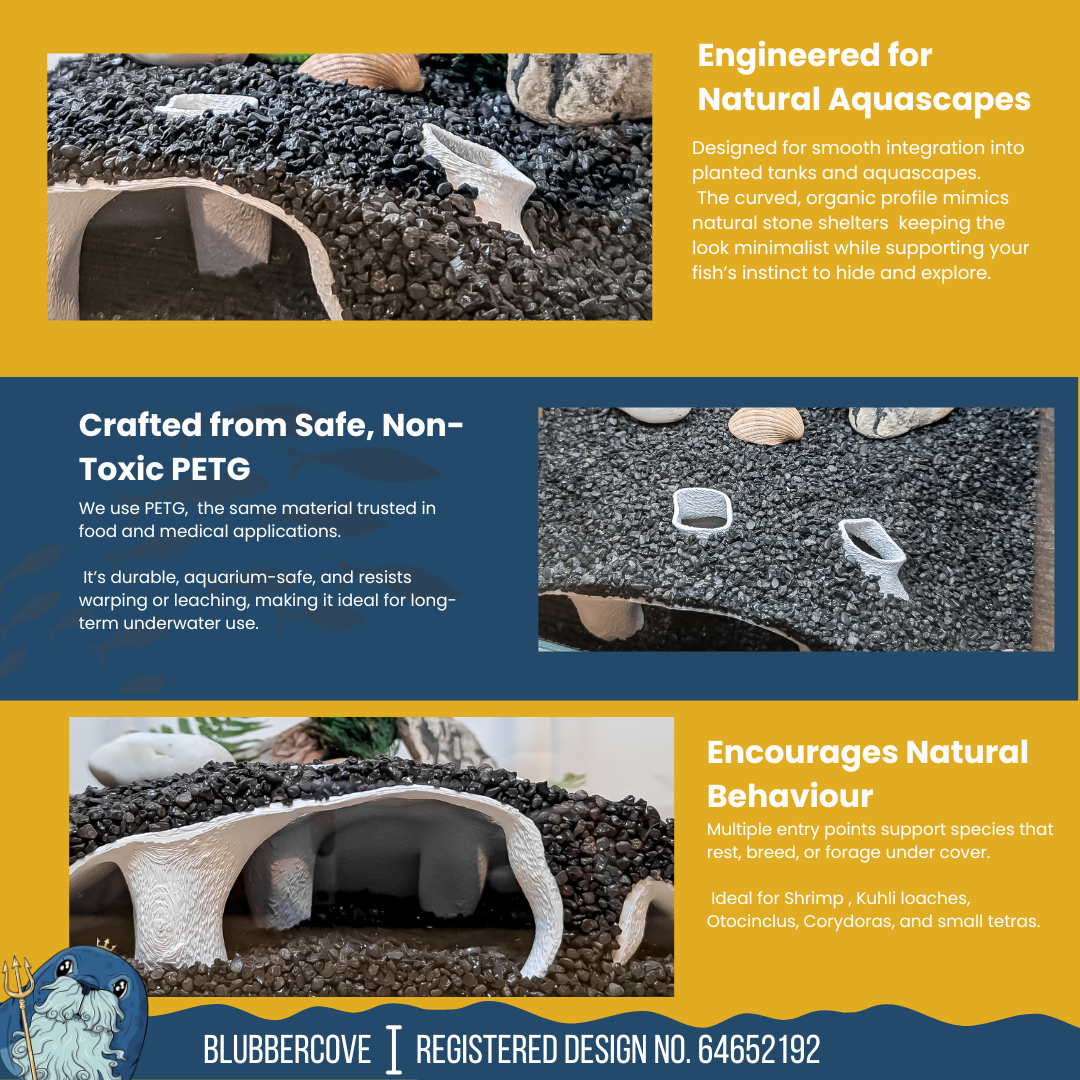 A cave that looks natural, feels safe, and fits perfectly. Sculpted from scratch and refined in-house, this underground-style aquarium cave is designed to mimic real aquatic hideaways — giving your fish a peaceful, shaded retreat.