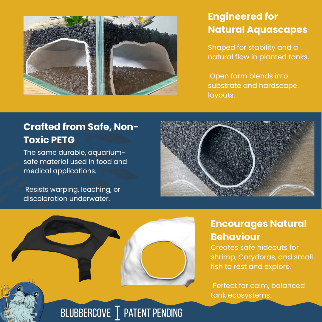 Made from aquarium-safe PETG plastic, this cave is durable, non-toxic, and designed for long-term use underwater. Its smooth, rounded interior keeps fins safe while mimicking natural stone shelters.